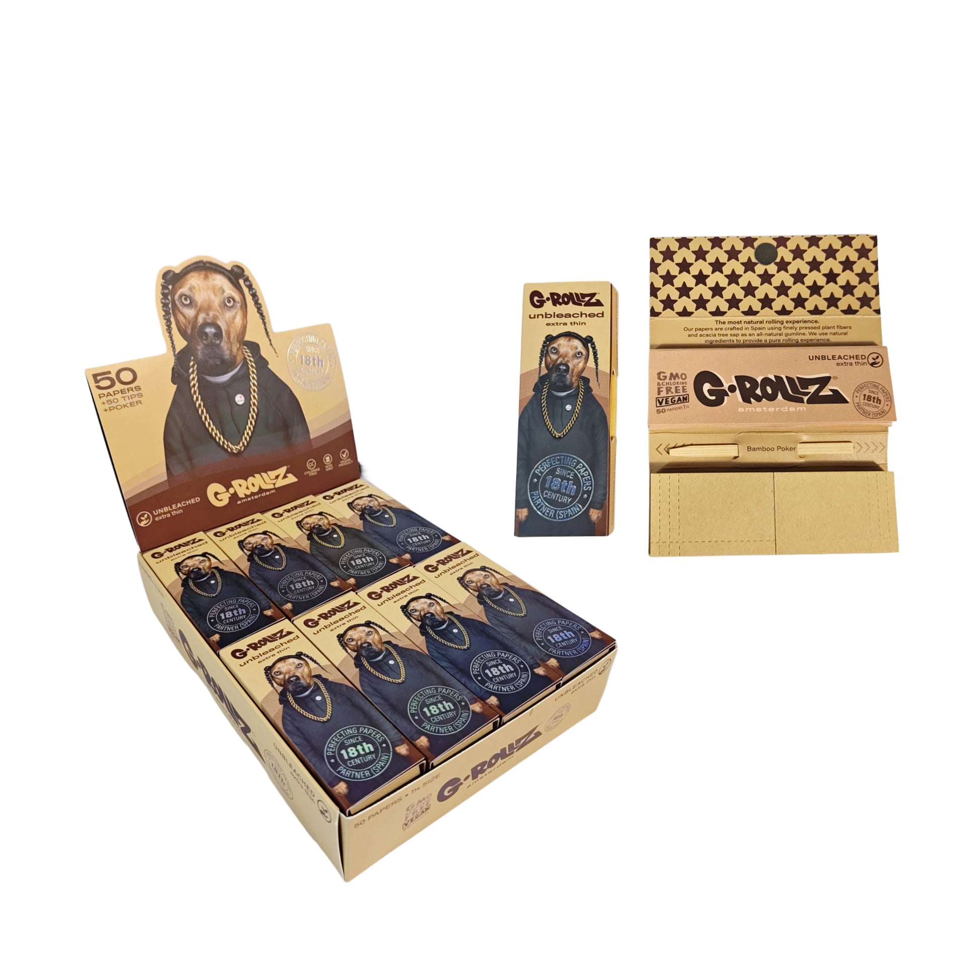 G-Rollz Unbleached 1 1/4 contiene papeles virgenes finos, faciles de usar y de combustion suave. Ofrecen un sabor puro sin adulterar y unaexperiencia, con un tamaño 1 1/4 y un papel resistente. Un kit de papeles renovador para una experiencia unica
